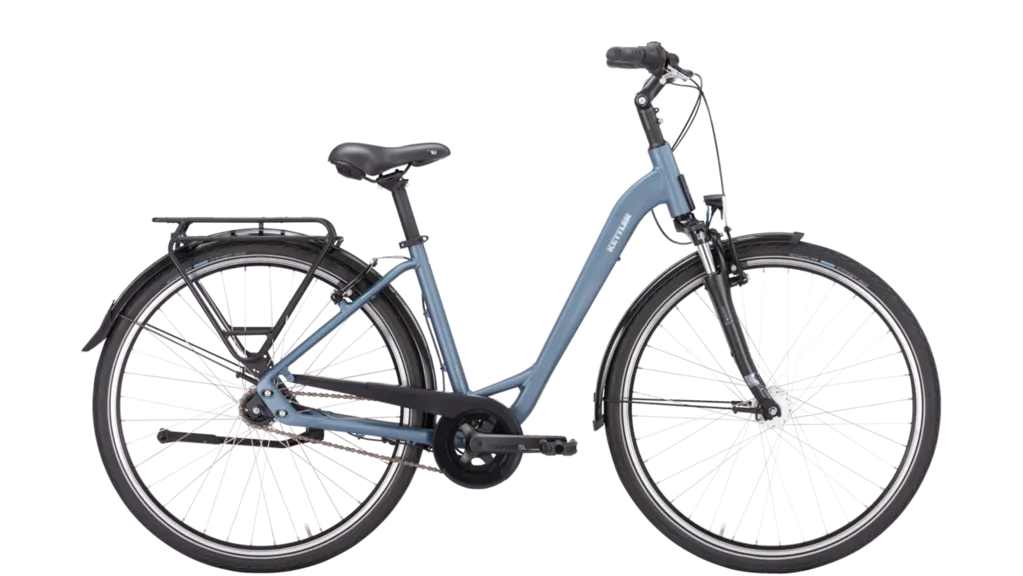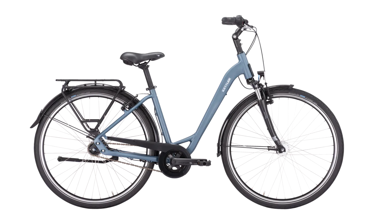 Voir tous les magasins qui vendent KettlerLe TRAVELLER 1.0 7G RT est disponible avec 2 types de cadres, et sa position de conduite droite offre beaucoup de confort et de sécurité en ville, notamment une visibilité optimale sur le trafic. Le nouveau design du cadre en aluminium convainc par ses lignes claires et son aspect moderne. Simple et intuitif, ce système est doté d’un moyeu à 7 vitesses, complété par de puissants freins V-brake. La dynamo moyeu du système d’éclairage fonctionne quelles que soient les conditions météorologiques. Bien protégée de l’humidité et de la saleté, la dynamo est très fiable et nécessite peu d’entretien. En couleur sport blue ou modern green matt (modèle wave uniquement), ce vélo urbain de 28 pouces offre un plaisir de conduire pur. L’attelage K-Link de KETTLER, pour une remorque pour enfants, est tout aussi pratique que le système de porte-bagages MonkeyLoad destiné à la fixation simple de sacoches et paniers. Le dispositif de montage d’un panier frontal QUADRIGA intégré au tube de direction renforce l’adéquation de ce vélo à un usage quotidien.