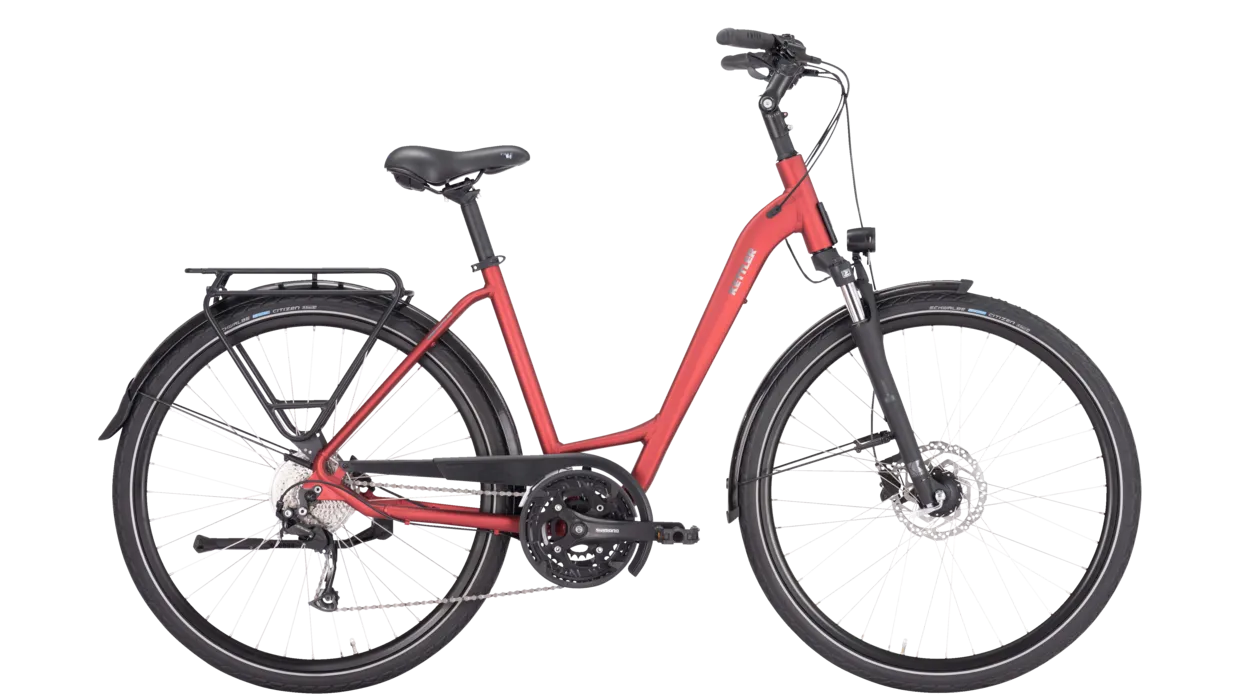 Voir tous les magasins qui vendent KettlerLe nouveau cadre se distingue par son design épuré et ses lignes fonctionnelles. Un dispositif d’éclairage puissant avec dynamo moyeu, le système de porte-bagages MonkeyLoad – les sacoches sont fixées en un clic. Des freins à disque mordants et parfaitement dosables, une fourche de suspension à réaction souple avec débattement de 63 mm et un dérailleur SHIMANO Deore à 3 x 9 vitesses permettent d’avancer sans effort, au quotidien comme en excursion. La position de conduite droite permet de profiter du paysage et d’avoir une visibilité optimale sur le trafic lorsque le TRAVELLER 2.0 27G roule sur ses pneus haut de gamme de la marque Schwalbe. Le dispositif de montage d’un panier frontal QUADRIGA intégré au tube de direction renforce l’adéquation de ce vélo à un usage quotidien. Ce vélo est proposé avec trois types de cadres : diamant, trapèze et wave, et convient donc à tous les goûts.