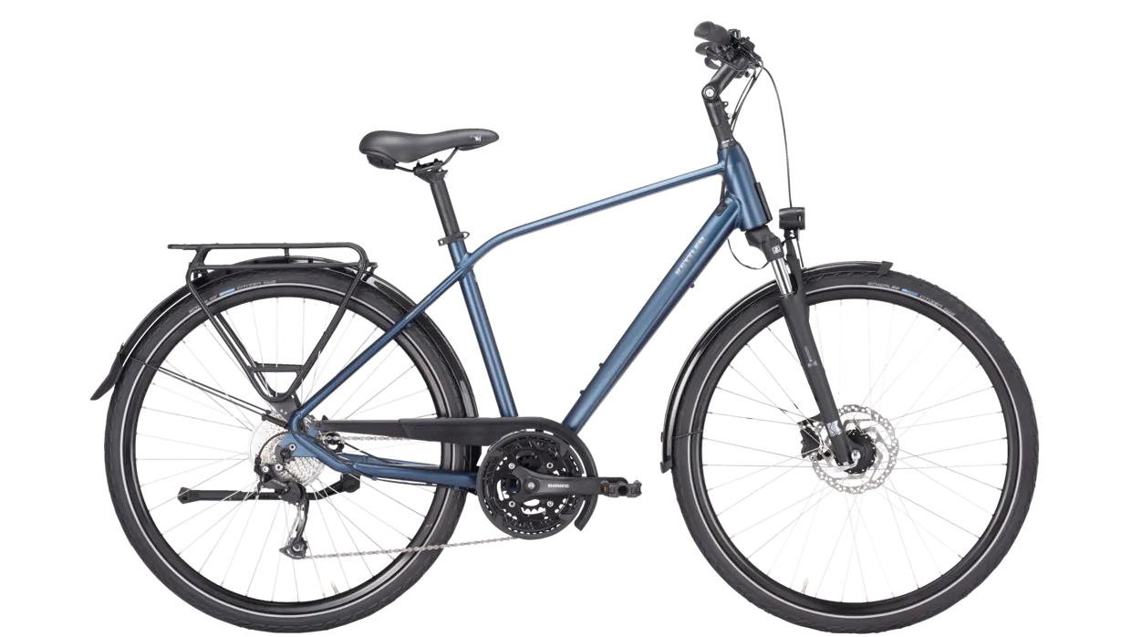 Voir tous les magasins qui vendent KettlerLe nouveau cadre se distingue par son design épuré et ses lignes fonctionnelles. Un dispositif d’éclairage puissant avec dynamo moyeu, le système de porte-bagages MonkeyLoad – les sacoches sont fixées en un clic. Des freins à disque mordants et parfaitement dosables, une fourche de suspension à réaction souple avec débattement de 63 mm et un dérailleur SHIMANO Deore à 3 x 9 vitesses permettent d’avancer sans effort, au quotidien comme en excursion. La position de conduite droite permet de profiter du paysage et d’avoir une visibilité optimale sur le trafic lorsque le TRAVELLER 2.0 27G roule sur ses pneus haut de gamme de la marque Schwalbe. Le dispositif de montage d’un panier frontal QUADRIGA intégré au tube de direction renforce l’adéquation de ce vélo à un usage quotidien. Ce vélo est proposé avec trois types de cadres : diamant, trapèze et wave, et convient donc à tous les goûts.