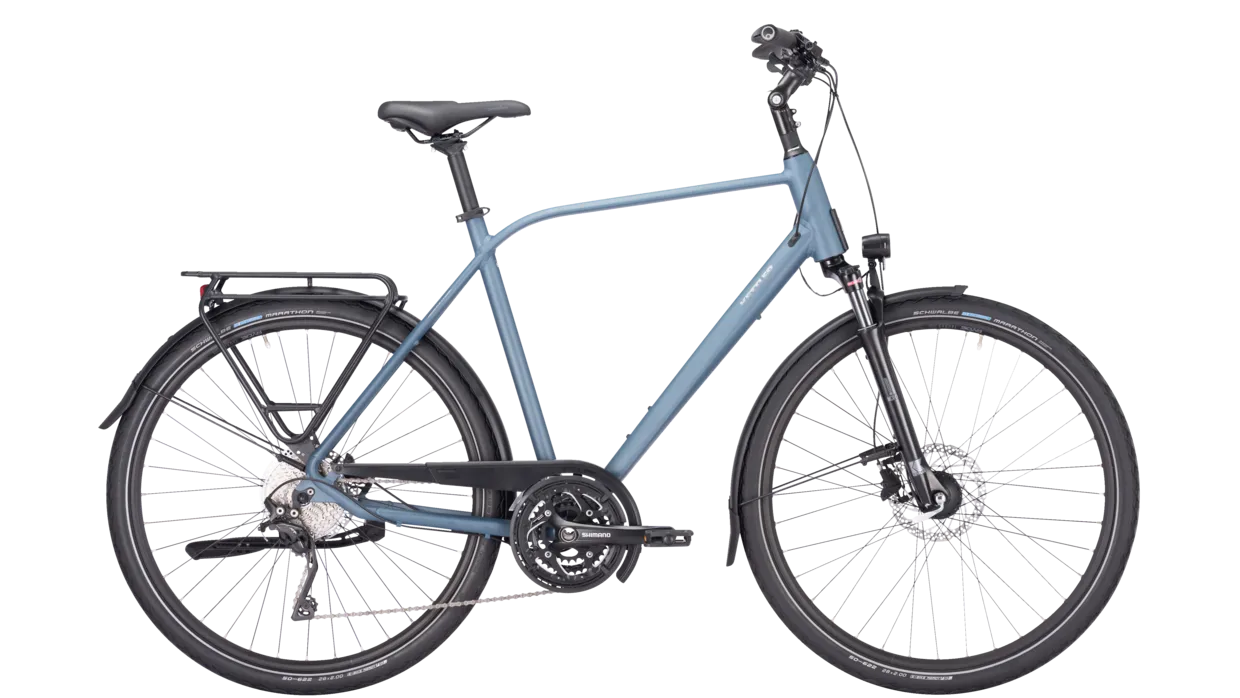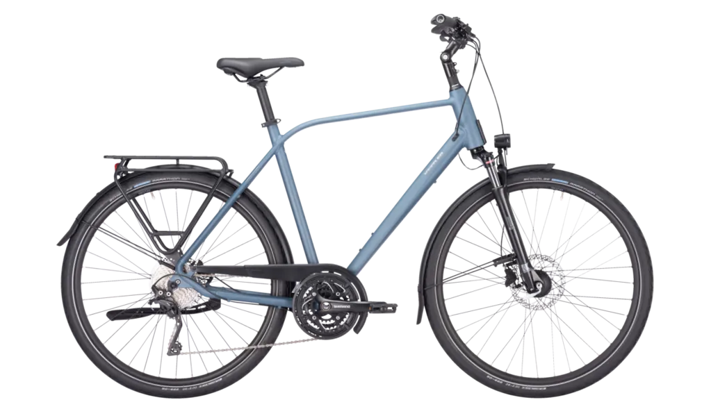 Voir tous les magasins qui vendent KettlerLe nouveau cadre : forme compacte et lignes droites Des rayons définis déterminent la forme de ce cadre en aluminium au design minimaliste, qui se distingue par des accents prononcés et des éléments intelligents adaptés les uns aux autres. Le vélo tout chemin classique TRAVELLER 3.0 30G est équipé de tout ce qui garantit la sécurité, le plaisir de conduite et la fonctionnalité lors des randonnées et au quotidien : avec ses 3 x 10 vitesses, ce vélo dispose d’une vaste plage de braquets avec de petits sauts de vitesse ; les freins à disque hydrauliques assurent une courte distance de freinage, même à une vitesse élevée. Le système de porte-bagages MonkeyLoad, qui permet de monter des sacoches simplement et rapidement, « flotte » élégamment au-dessus du garde-boue et une fourche pneumatique suspendue à réaction souple avec 63 mm de débattement assure l’absorption des chocs et une bonne adhérence au sol. L’équipement comporte également un véritable classique, avec les pneus SCHWALBE Marathon. Le dispositif de montage d’un panier frontal QUADRIGA intégré au tube de direction renforce l’adéquation de ce vélo à un usage quotidien.