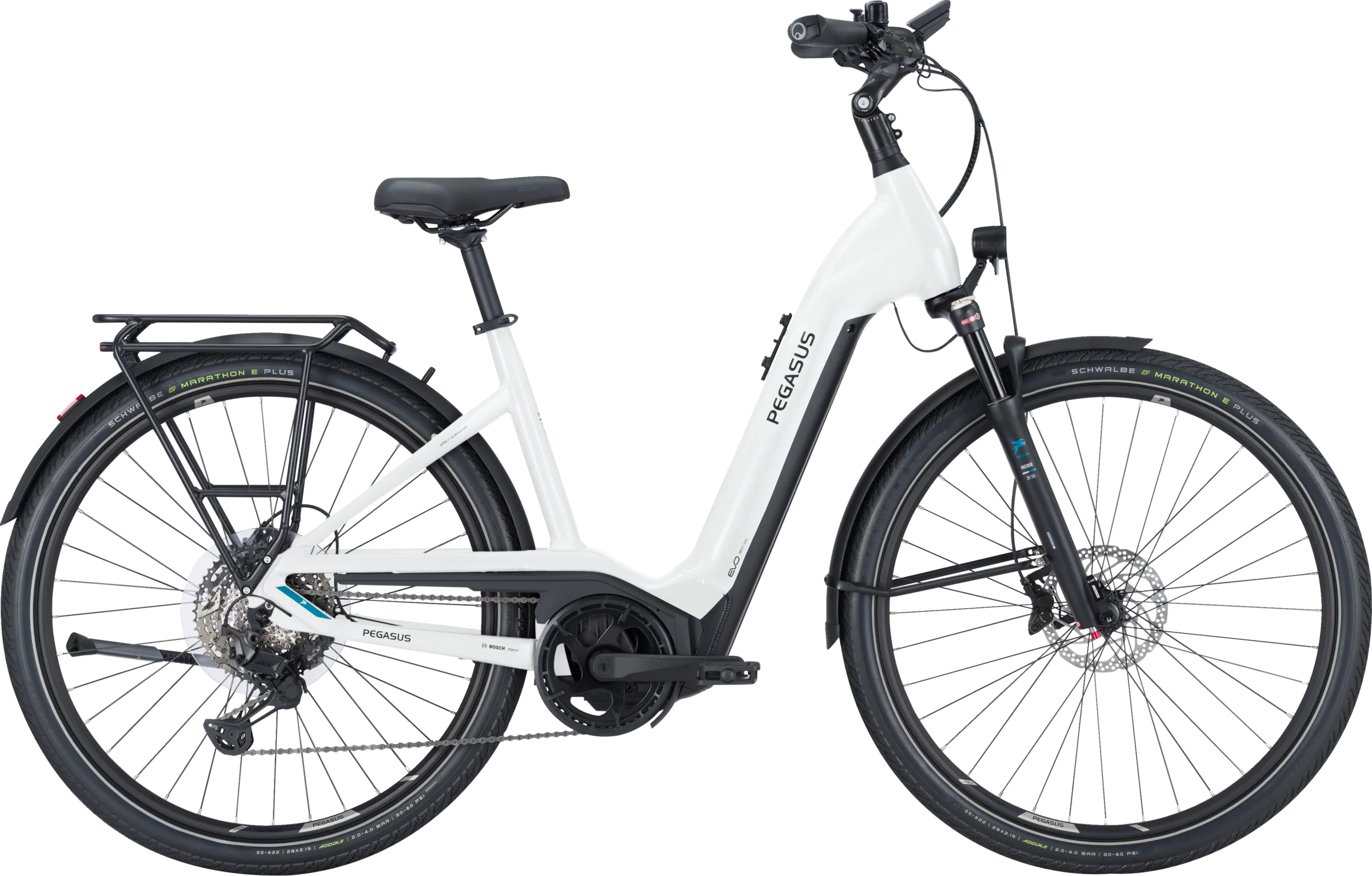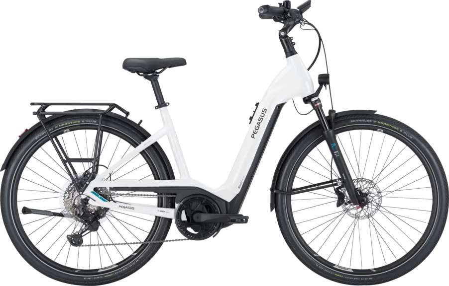 Voir tous les magasins qui vendent PegasusAvec la puissance du moteur Bosch Performance Line CX et les remarquables vitesses Shimano Deore XT à 11 rapports avec la technologie LinkGlide à faible usure, le Premio EVO 11 Lite est prêt pour les trajets rapides et les randonnées sur des terrains difficiles. L'équipement de haute qualité avec les freins à disque hydrauliques Shimano à 4 pistons, la robuste fourche à suspension pneumatique Suntour Mobie, les pneus anti-crevaison Schwalbe Marathon et les pédales Urban sécurisées avec grip tape apportent un plaisir de conduite supplémentaire. Autre point fort : le système d'éclairage LED particulièrement performant avec capteur et feux de jour. En outre, le Premio EVO 11 Lite est homologué pour un poids total allant jusqu'à 150 kg.