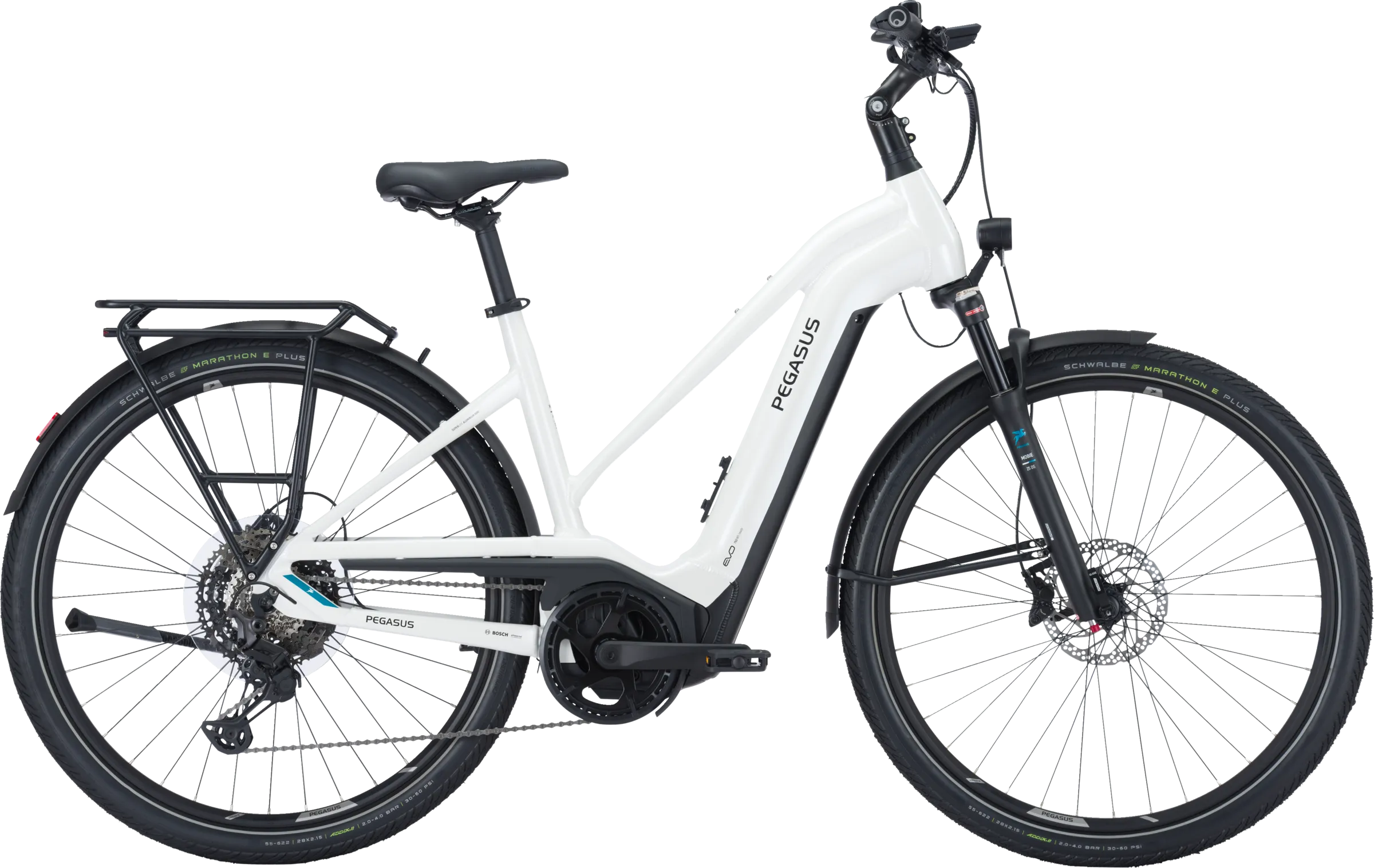 Voir tous les magasins qui vendent PegasusAvec la puissance du moteur Bosch Performance Line CX et les remarquables vitesses Shimano Deore XT à 11 rapports avec la technologie LinkGlide à faible usure, le Premio EVO 11 Lite est prêt pour les trajets rapides et les randonnées sur des terrains difficiles. L'équipement de haute qualité avec les freins à disque hydrauliques Shimano à 4 pistons, la robuste fourche à suspension pneumatique Suntour Mobie, les pneus anti-crevaison Schwalbe Marathon et les pédales Urban sécurisées avec grip tape apportent un plaisir de conduite supplémentaire. Autre point fort : le système d'éclairage LED particulièrement performant avec capteur et feux de jour. En outre, le Premio EVO 11 Lite est homologué pour un poids total allant jusqu'à 150 kg.