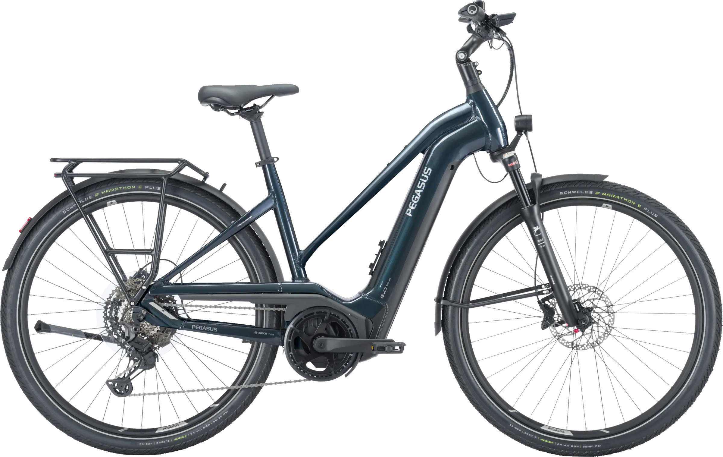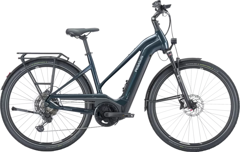 Voir tous les magasins qui vendent PegasusAvec la puissance du moteur Bosch Performance Line CX et les remarquables vitesses Shimano Deore XT à 11 rapports avec la technologie LinkGlide à faible usure, le Premio EVO 11 Lite est prêt pour les trajets rapides et les randonnées sur des terrains difficiles. L'équipement de haute qualité avec les freins à disque hydrauliques Shimano à 4 pistons, la robuste fourche à suspension pneumatique Suntour Mobie, les pneus anti-crevaison Schwalbe Marathon et les pédales Urban sécurisées avec grip tape apportent un plaisir de conduite supplémentaire. Autre point fort : le système d'éclairage LED particulièrement performant avec capteur et feux de jour. En outre, le Premio EVO 11 Lite est homologué pour un poids total allant jusqu'à 150 kg.