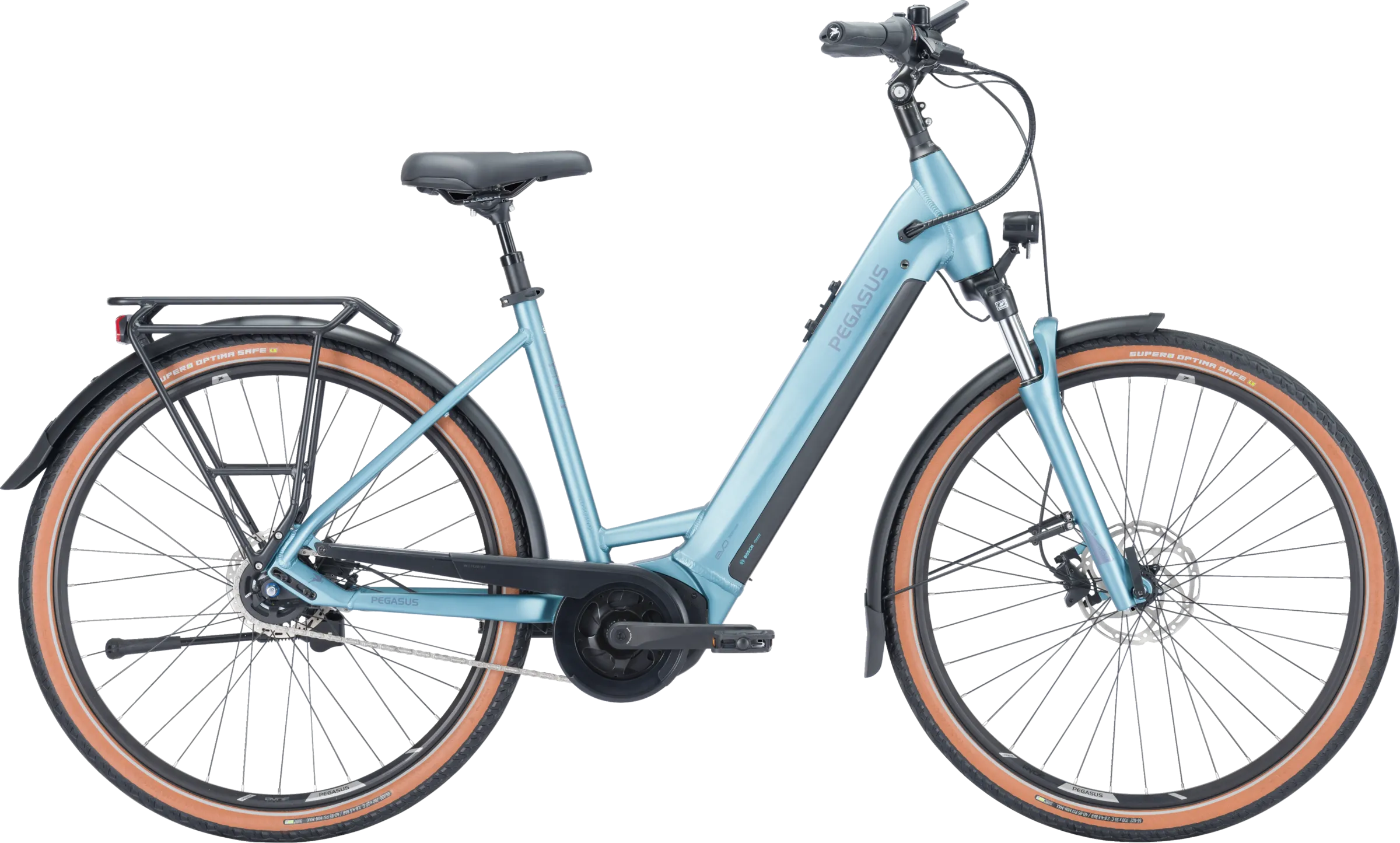 Voir tous les magasins qui vendent PegasusAvec le nouveau moteur Bosch Performance Line et un couple maximal de 75 Newton-mètres, le Premio EVO 5F dispose de réserves importantes pour une conduite sportive et confortable. Grâce au moyeu de vélo électrique à 5 vitesses Shimano Nexus, facile à utiliser et nécessitant peu d'entretien, ce couple peut être converti de manière optimale. Grâce à l'équipement de très haute qualité avec les freins à disque hydrauliques Shimano, les pneus increvables Supero Optima Safe, les pédales Urban avec grip et le puissant système d'éclairage LED, la sécurité est toujours au rendez-vous. La tige de selle à suspension, la selle confortable Comodoro et la fourche à suspension robuste offrent un confort supplémentaire.