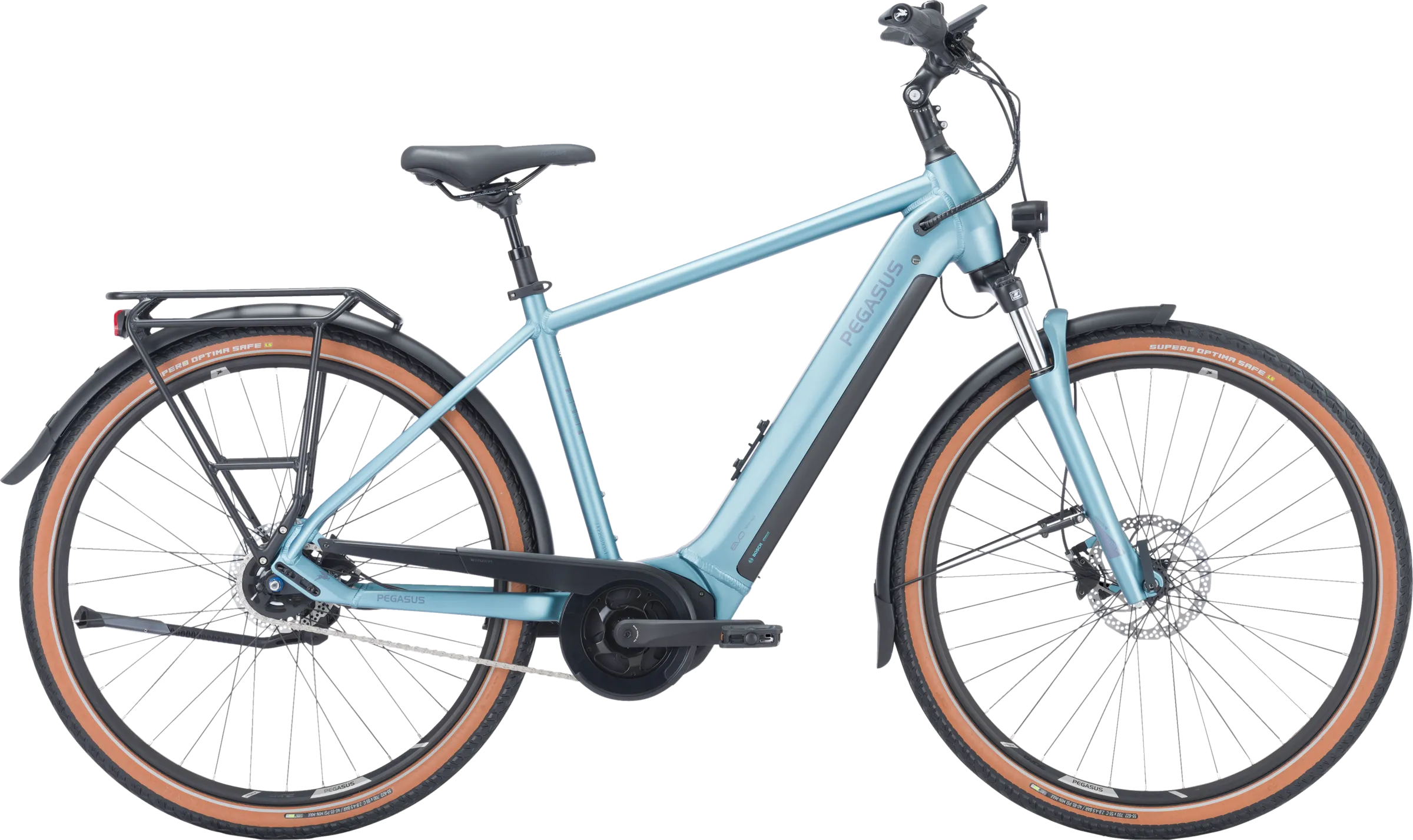 Voir tous les magasins qui vendent PegasusAvec le nouveau moteur Bosch Performance Line et un couple maximal de 75 Newton-mètres, le Premio EVO 5F dispose de réserves importantes pour une conduite sportive et confortable. Grâce au moyeu de vélo électrique à 5 vitesses Shimano Nexus, facile à utiliser et nécessitant peu d'entretien, ce couple peut être converti de manière optimale. Grâce à l'équipement de très haute qualité avec les freins à disque hydrauliques Shimano, les pneus increvables Supero Optima Safe, les pédales Urban avec grip et le puissant système d'éclairage LED, la sécurité est toujours au rendez-vous. La tige de selle à suspension, la selle confortable Comodoro et la fourche à suspension robuste offrent un confort supplémentaire.